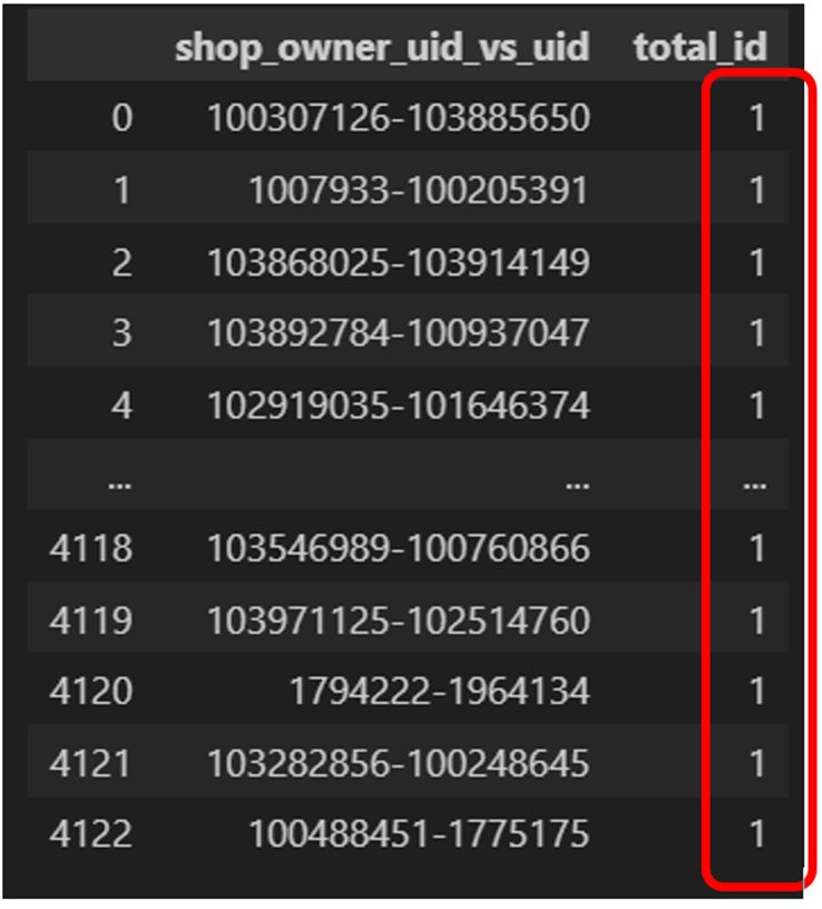 ==> Tính số lần xuất hiện của những chủ shop và những khách hàng trong bảng df_find_scammers.